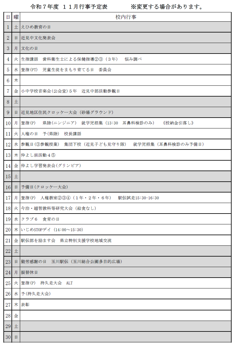 10月行事予定 11月行事予定 年間(4~6月) 年間(7~9月) 年間(10~12月) 年間(1~3月)