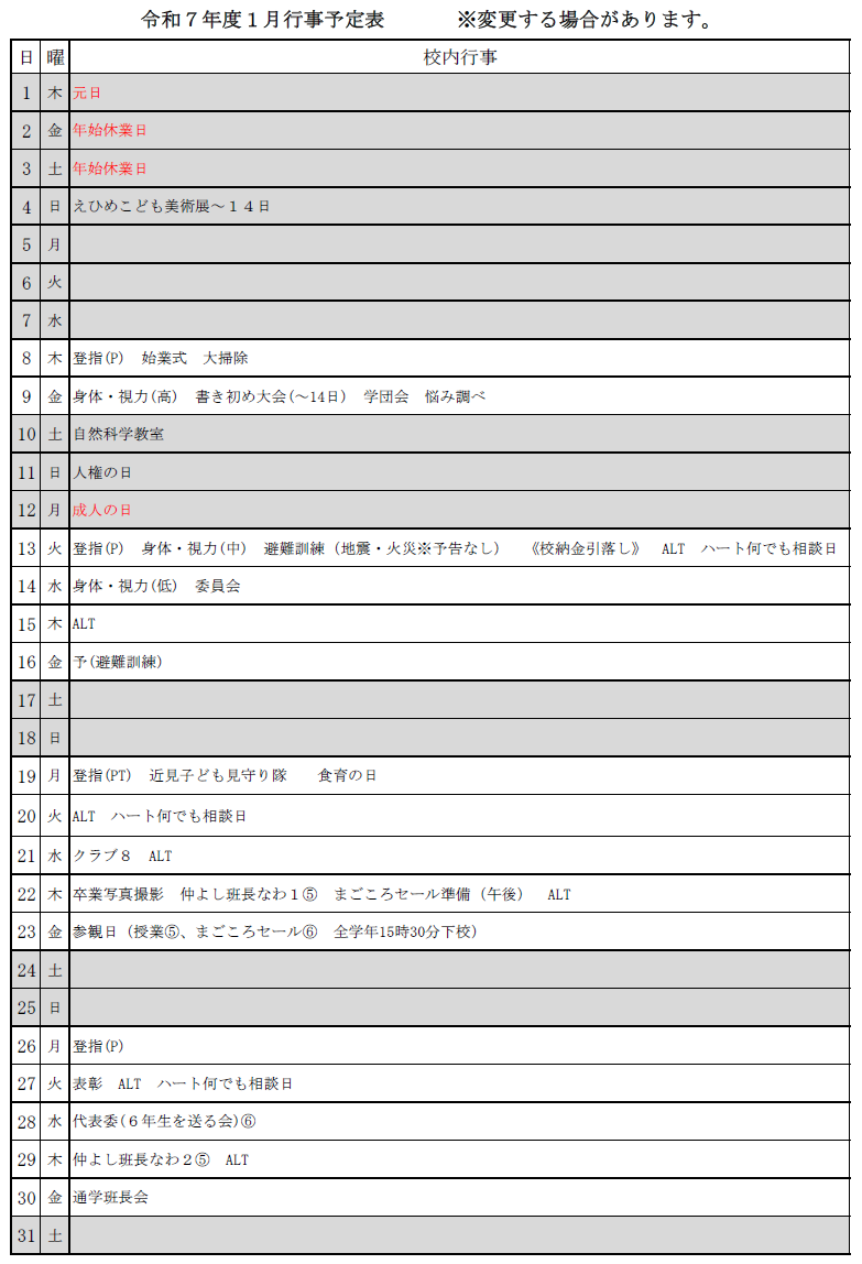 12月行事予定 1月行事予定 年間(4~6月) 年間(7~9月) 年間(10~12月) 年間(1~3月)